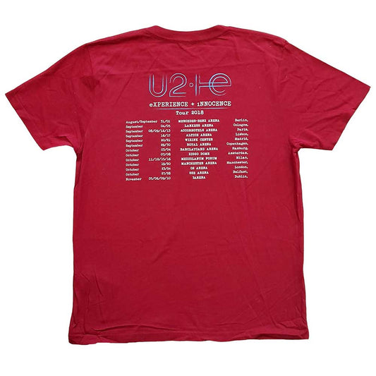 U2 Unisex T-Shirt: I+E 2018 Tour Dates (Back Print) (Ex-Tour)